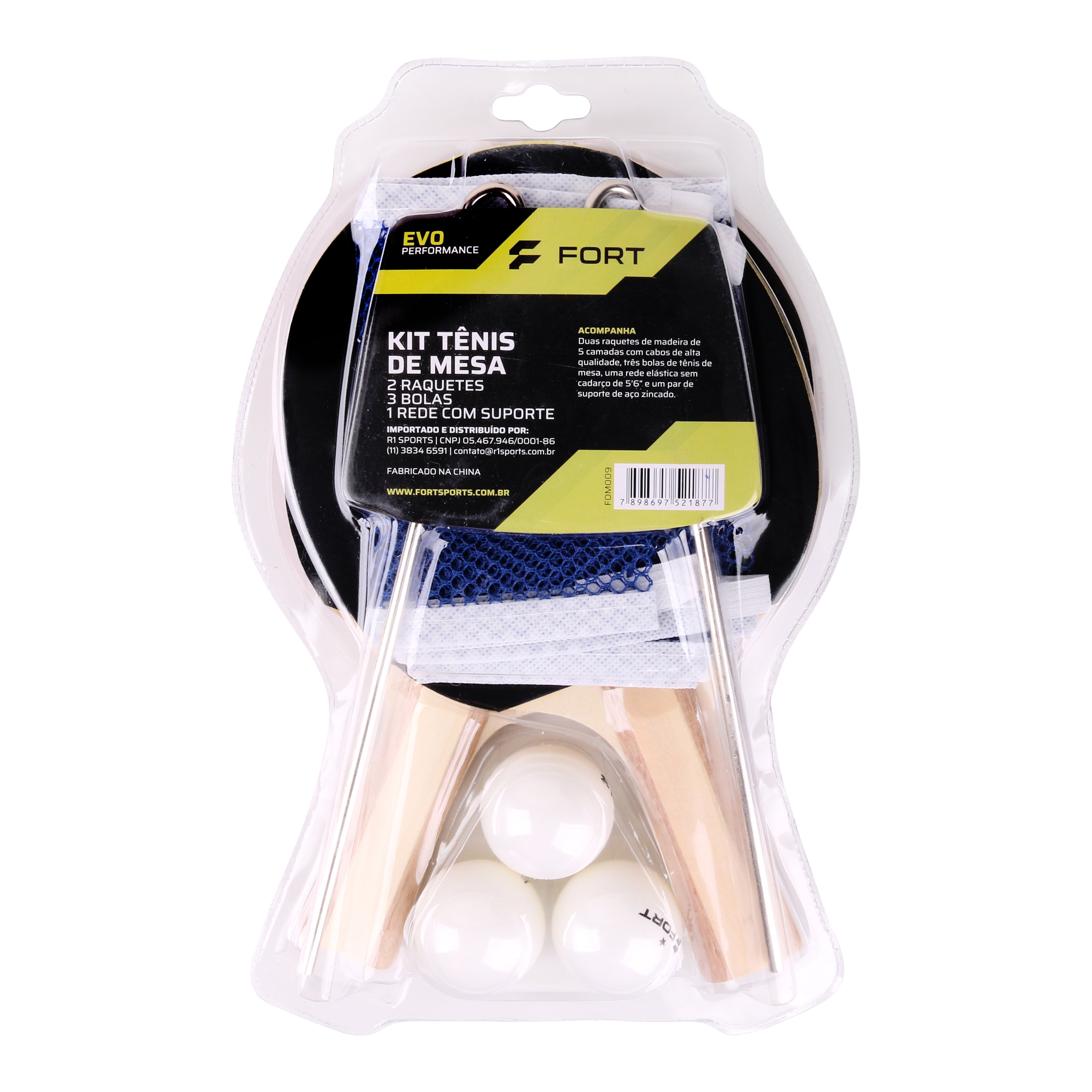 Kit Tênis de Mesa Evo (Duas Raquetes C/ Três Bolas – 1 Estrela e Rede Poste)