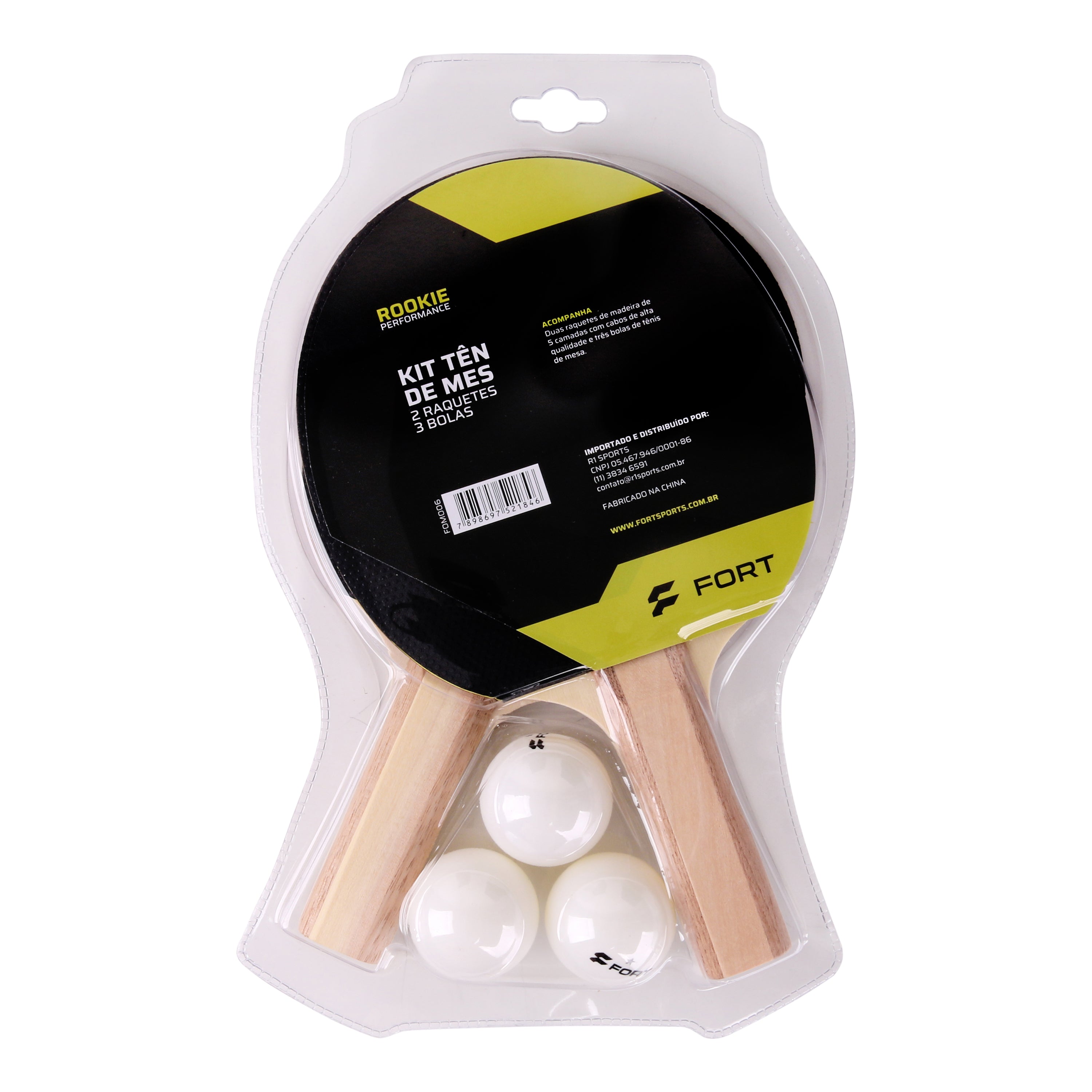 Kit Tênis de Mesa Rookie (Duas Raquetes C/ Três Bolas – 1 Estrela)