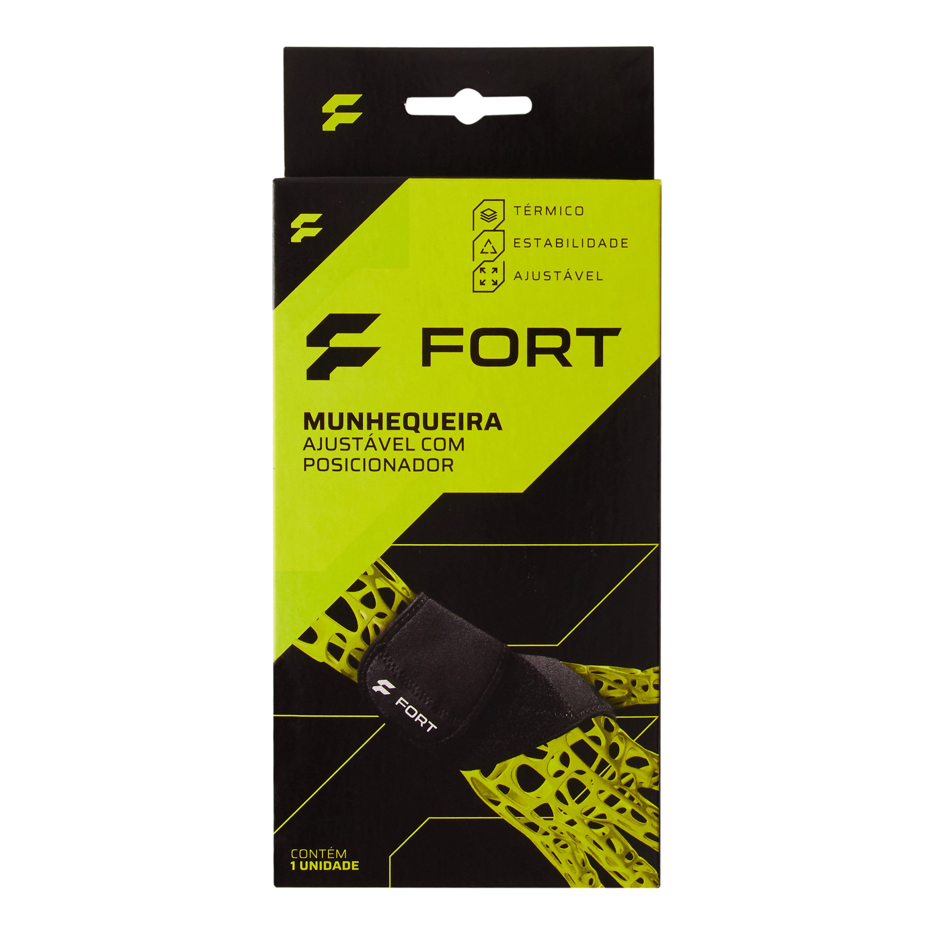 Munhequeira Ajustável com Posicionador FORT possui orifício posicionador de polegar para facilitar a colocação e o ajuste de pressão e foi desenvolvida para proporcionar uma imobilização parcial do punho, mantendo-o firme e aquecido, diminuindo assim o risco de lesões e entorses além de auxiliar no tratamento de dores, causadas por tendinites ou LER (lesão por esforço repetitivo) sendo também ideal para a prática esportiva .
